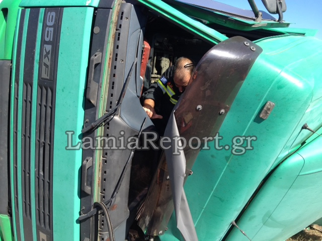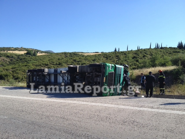 Λίγο μετά τη Λαμία, στο δρόμο προς Δομοκό, δίπλωσε μία νταλίκα και ανετράπη σήμερα ο πρωί, προφανώς λόγω μετατόπισης φορτίου.