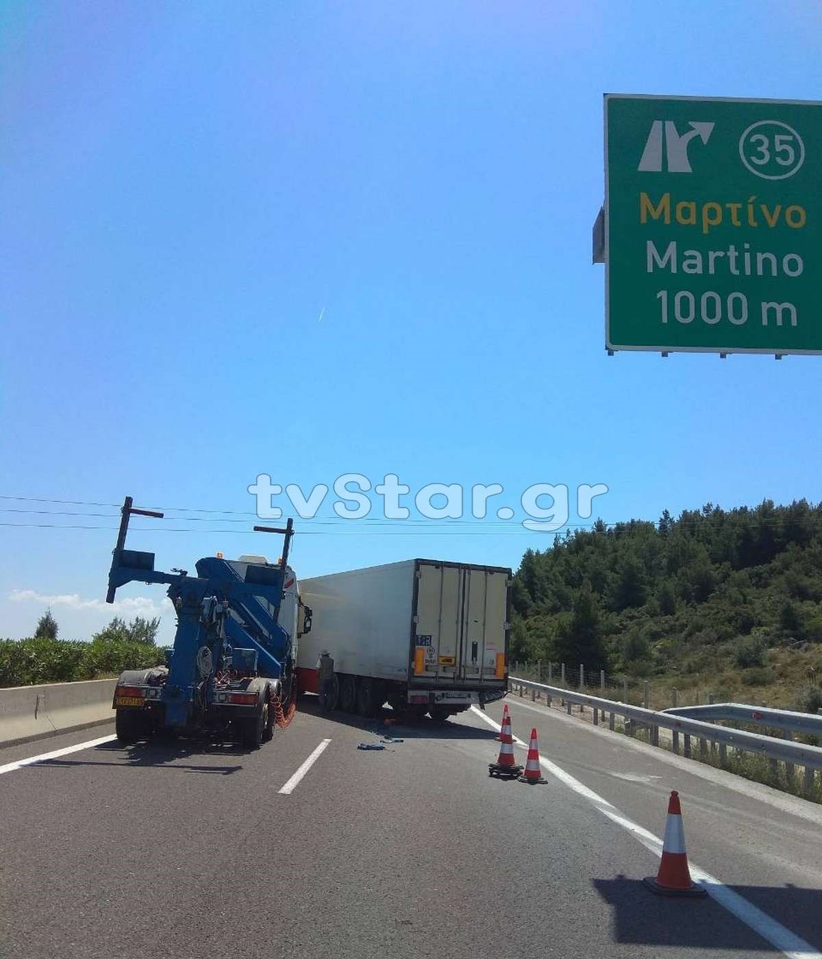 Το ατύχημα σημειώθηκε στις στροφές του Μαρτίνου. Μέχρι να απομακρυνθεί η νταλίκα η τροχαία εξέτρεψε την κυκλοφορία των οχημάτων από τον κόμβο της Μαλεσίνας στον κόμβο του Μαρτίνου.