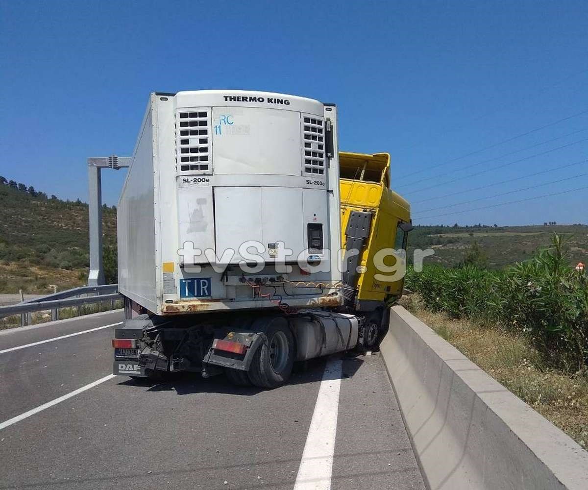 Παραλίγο να προκληθεί σοβαρό ατύχημα με μια νταλίκα στην εθνική οδό Αθηνών-Λαμίας το μεσημέρι της Παρασκευής. Λίγο μετά τις 12 ο οδηγός έχασε τον έλεγχο της νταλίκας, το όχημα συγκρούστηκε με ταχύτητα στο τσιμεντένιο στηθαίο και δίπλωσε. Η κυκλοφορία διακόπηκε αφού το θηριώδες όχημα είχε καταλάβει όλο το οδόστρωμα.