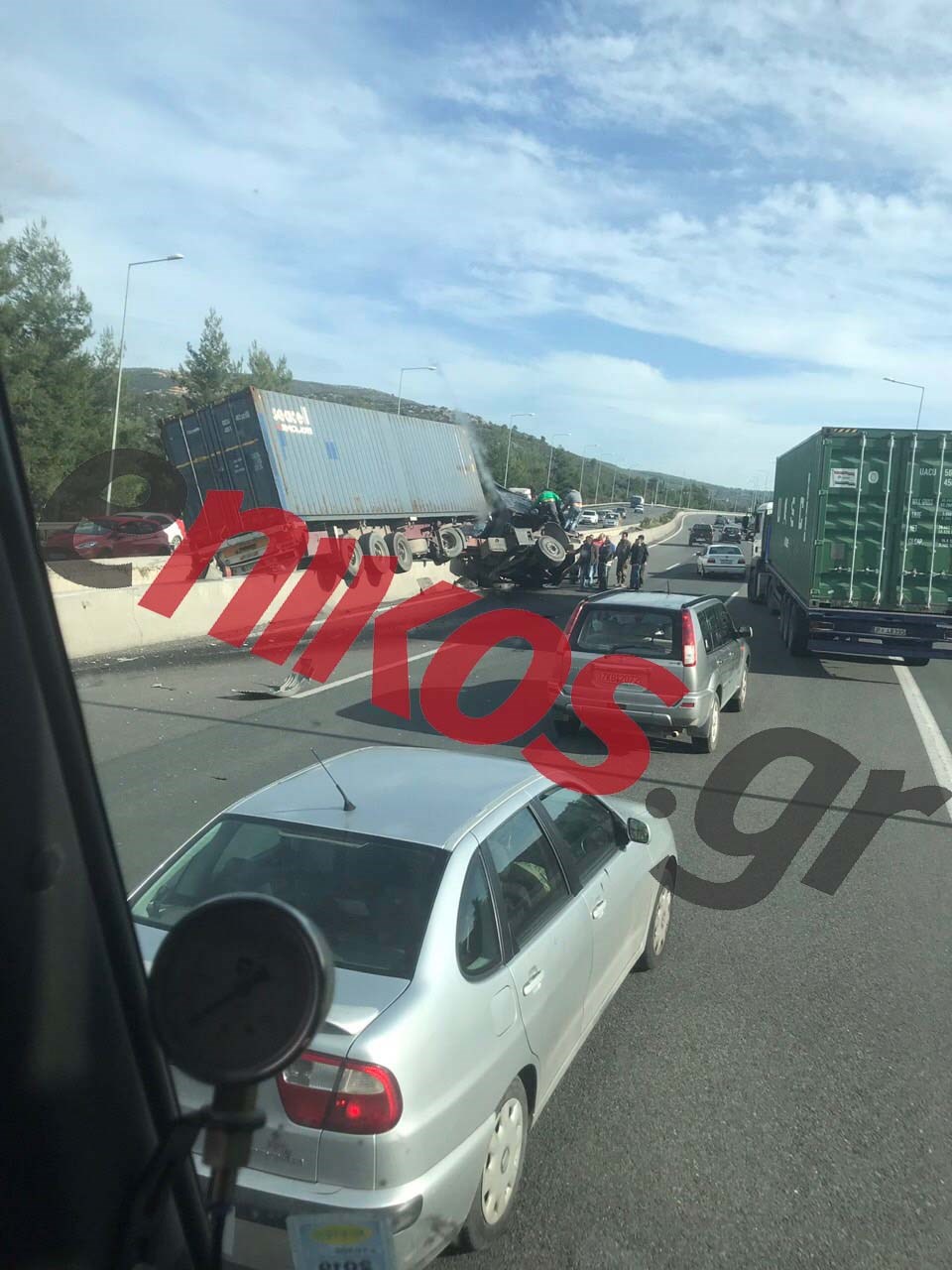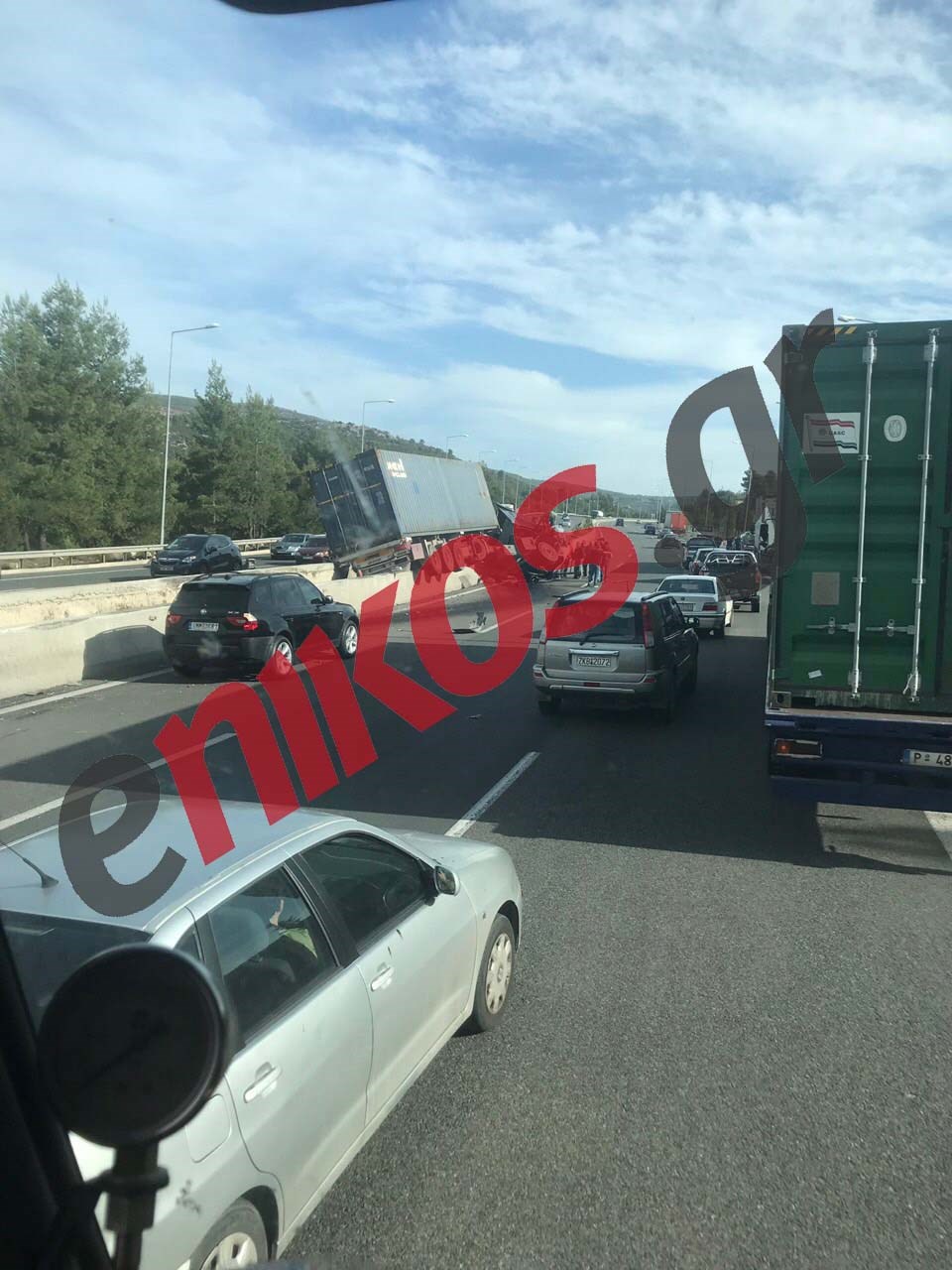 Σύμφωνα με την τροχαία, ο οδηγός της νταλίκας που βλέπετε στις φωτογραφίες που έστειλε αναγνώστης του enikos.gr, έχασε τον έλεγχο του οχήματος του, με αποτέλεσμα να “καβαλήσει” το διαχωριστικό ανάμεσα στα δύο ρεύματα κυκλοφορίας.