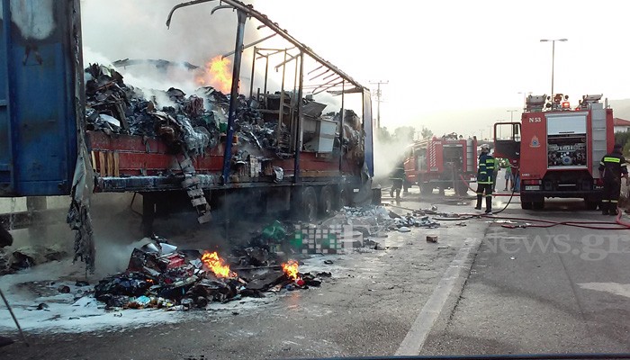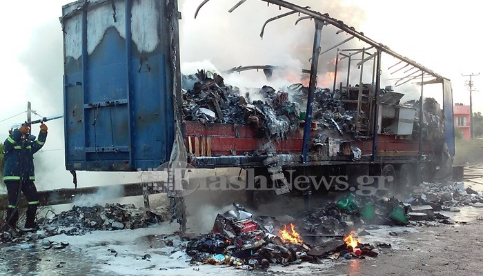 Στις φλόγες τυλίχτηκε, λίγο πριν τις 7,30 το πρωί μια νταλίκα η οποία κινείτο στην εθνική οδό Χανίων – Κισάμου και ενώ ήταν στο ύψος του Βαμβακόπουλου.