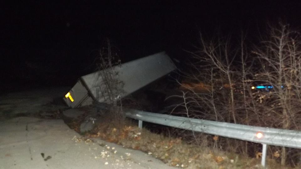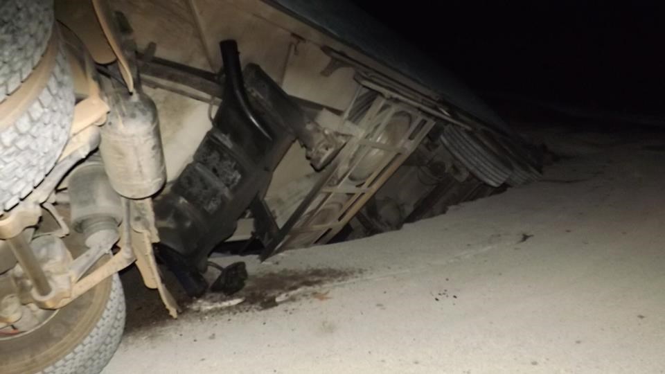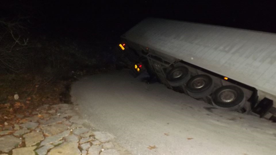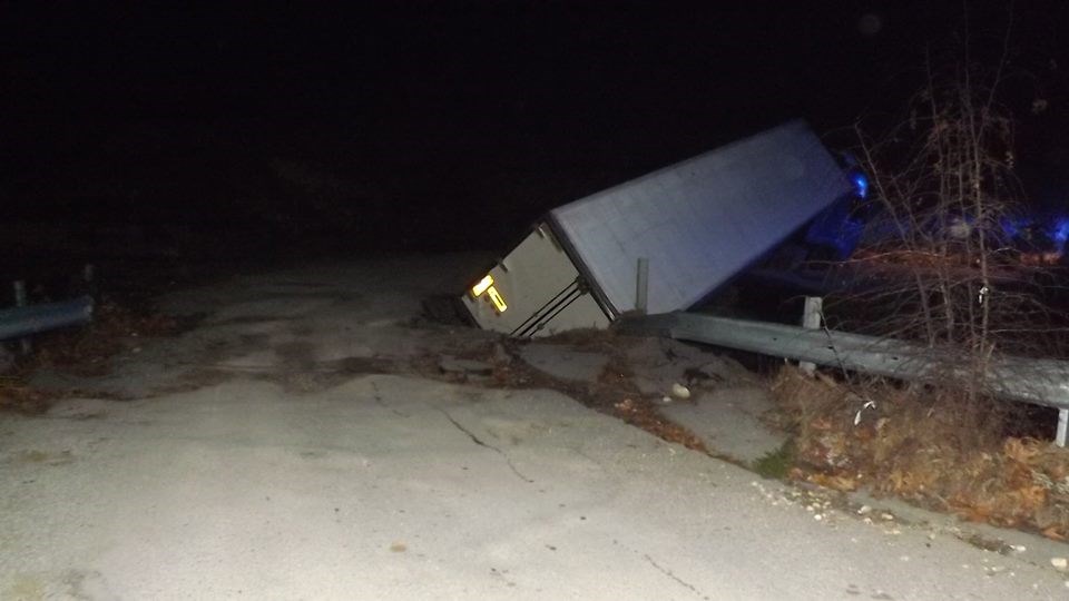 Τροχαίο ατύχημα σημειώθηκε το βράδυ της Δευτέρας στην περιοχή Χάντακας, στον δρόμο Αιανής- Καισαρείας, όταν υποχώρησε το οδόστρωμα με αποτέλεσμα ο δρόμος να “καταπιεί” μία νταλίκα, σύμφωνα με το kozanimedia.gr.