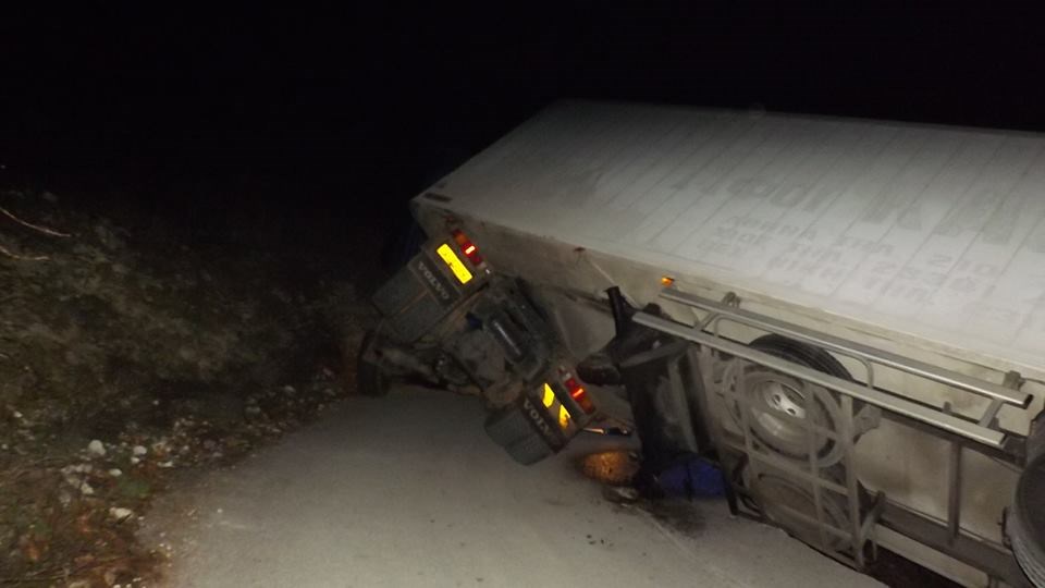 Χωρίς να τραυματιστεί ο οδηγός κατάφερε να βγει από το όχημα. Το εμπόρευμα 20 τόνων που μετέφερε η νταλίκα φέρεται να έχει καταστραφεί.