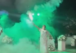 Σε… Θύρα 13 μετέτρεψε μία νύφη τον γάμο της, η οποία φόρεσε την φανέλα της αγαπημένης της ομάδας πάνω από το νυφικό, άναψε καπνογόνο και έκανε θεαματική είσοδο με τον ύμνο Παναθηναϊκού.