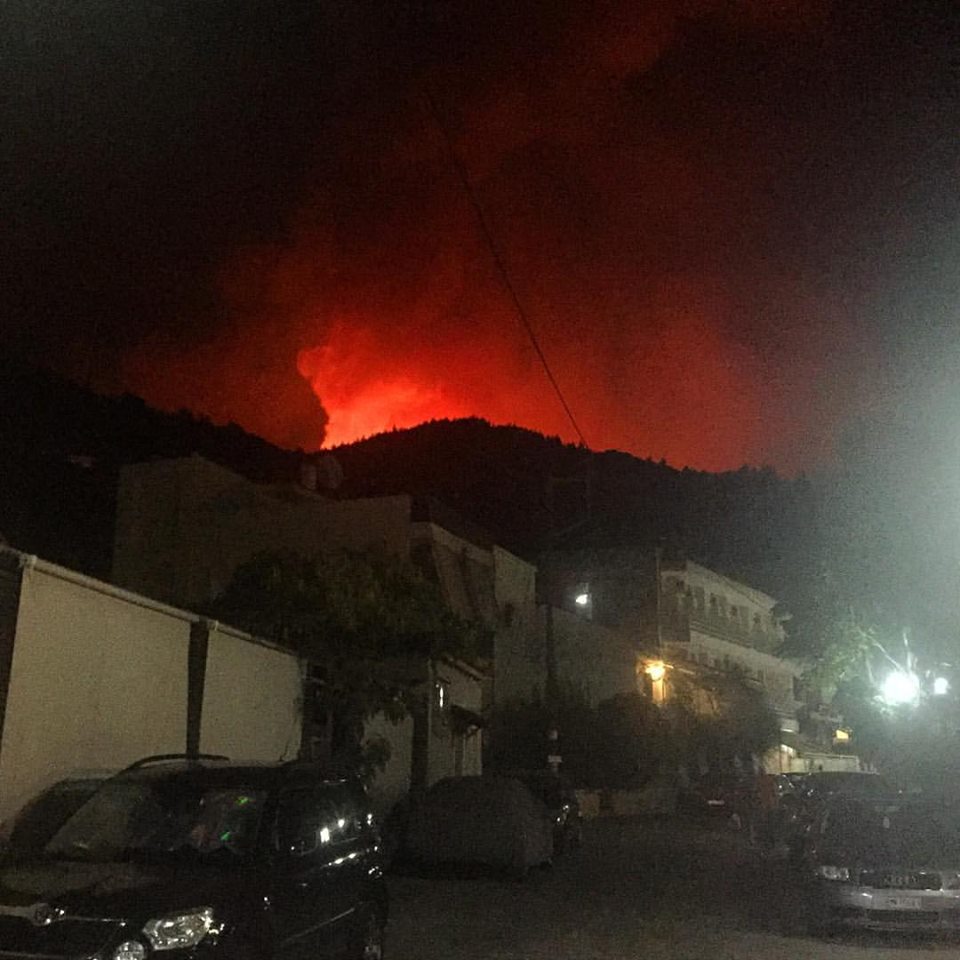 Λίγα λεπτά αργότερα η φωτιά έφτασε πολύ κοντά στο ξενοδοχείο αλλά με τη βοήθεια των πυροσβεστών κατάφεραν να τη σβήσουν. Τα πυροσβεστικά οχήματα έμειναν εκεί όλη τη νύχτα για τυχόν αναζωπυρώσεις.