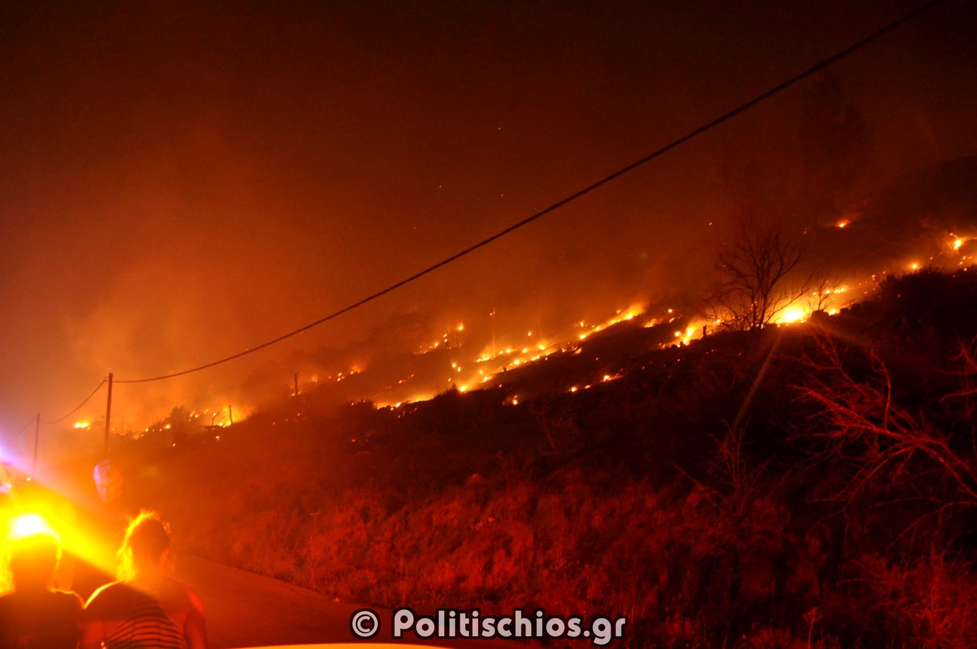 Χίος – Οι φλόγες έφτασαν σε αυλές σπιτιών – ΒΙΝΤΕΟ