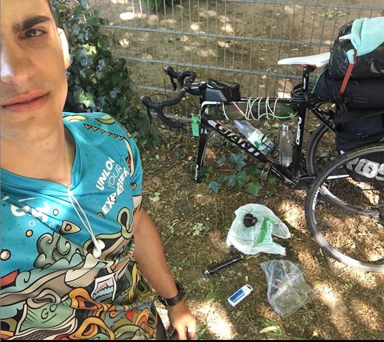 Είχαν προηγηθεί 48 συναρπαστικές ημέρες, με ευχάριστες στιγμές, απρόοπτα αλλά κυρίως με πολλή δύναμη ψυχής από την πλευρά του 20χρονου. «Την πρώτη μέρα που έφυγα είχε χαλάζι και χιόνι», θυμάται, ενώ από τις πρώτες κιόλας ημέρες του ταξιδιού στράβωσε ο πίσω τροχός του ποδηλάτου του -ένα μεταχειρισμένο αγωνιστικό που αγόρασε αντί 300 λιρών- με αποτέλεσμα να παθαίνει πολλές φορές λάστιχο στη διαδρομή…