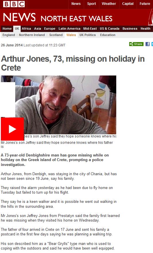Ουσιαστικά ο 73χρονος έφτασε στα Χανιά στις 17 Ιουνίου και έφυγε απο τα ενοικιαζόμενα δωμάτια στις 19 Ιουνίου χωρίς να δώσει περαιτέρω σημεία ζωής, ενώ στους συγγενείς του στην Αγγλία είχε στείλει μια κάρτα στην οποία ανέφερε πως σχεδίαζε μια πεζοπορία.