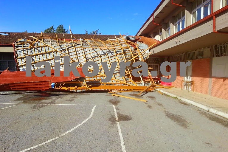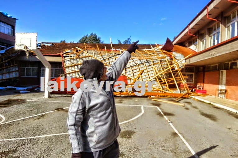 Τυχερά ήταν τα παιδιά του Λυκείου και του Γυμνασίου της Μελίκης στην Ημαθία που δεν είχαν σχολείο σήμερα καθώς από τον ισχυρό αέρα κατέρρευσε όλη η σκεπή του κτιρίου.