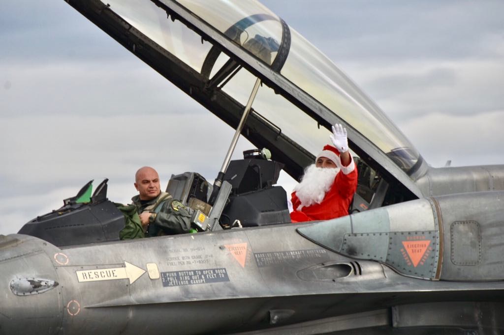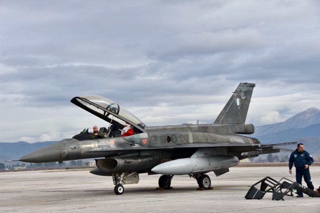 Ο Άγιος Βασίλης αποφάσισε να αποφύγει την κίνηση και προτίμησε να χρησιμοποιήσει ένα F-16 για τις μετακινήσεις του στη Λάρισα.