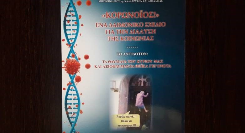 “Ξαναχτυπά” ο Μητροπολίτης πρώην Καλαβρύτων και Αιγιαλείας Αμβρόσιος. Όπως έγινε γνωστό, ο Αμβρόσιος κυκλοφορεί νέο βιβλίο με τίτλο “Κορονοϊός: Ένα δαιμονικό σχέδιο για τη διάλυση της κοινωνίας”, το οποίο διατίθεται δωρεάν από το βιβλιοπωλείο της Ιεράς Μητροπόλεως «Βιβλίο και Εικόνα», καθώς επίσης και από τους κεντρικούς Ιερούς Ναούς Αιγίου, Διακοπτού, Ακράτας, Αιγείρας και Καλαβρύτων. Στον υπότιτλο του βιβλίου αναφέρεται “Το αντίδοτον: Τα θαύματα του Κυρίου μας και αξιοθαύμαστα θεϊκά γεγονότα”, ενώ για το εξώφυλλο ο Αμβρόσιος επέλεξε μια φωτογραφία που είχε γίνει viral το περασμένο διάστημα. Πρόκειται για φωτογραφία στην οποία μια ηλικιωμένη υποτίθεται ότι έχει σκαρφαλώσει σε μια κλειστή πόρτα εκκλησίας και λέει “άνοιξε παπά, θέλω να κοινωνήσω.