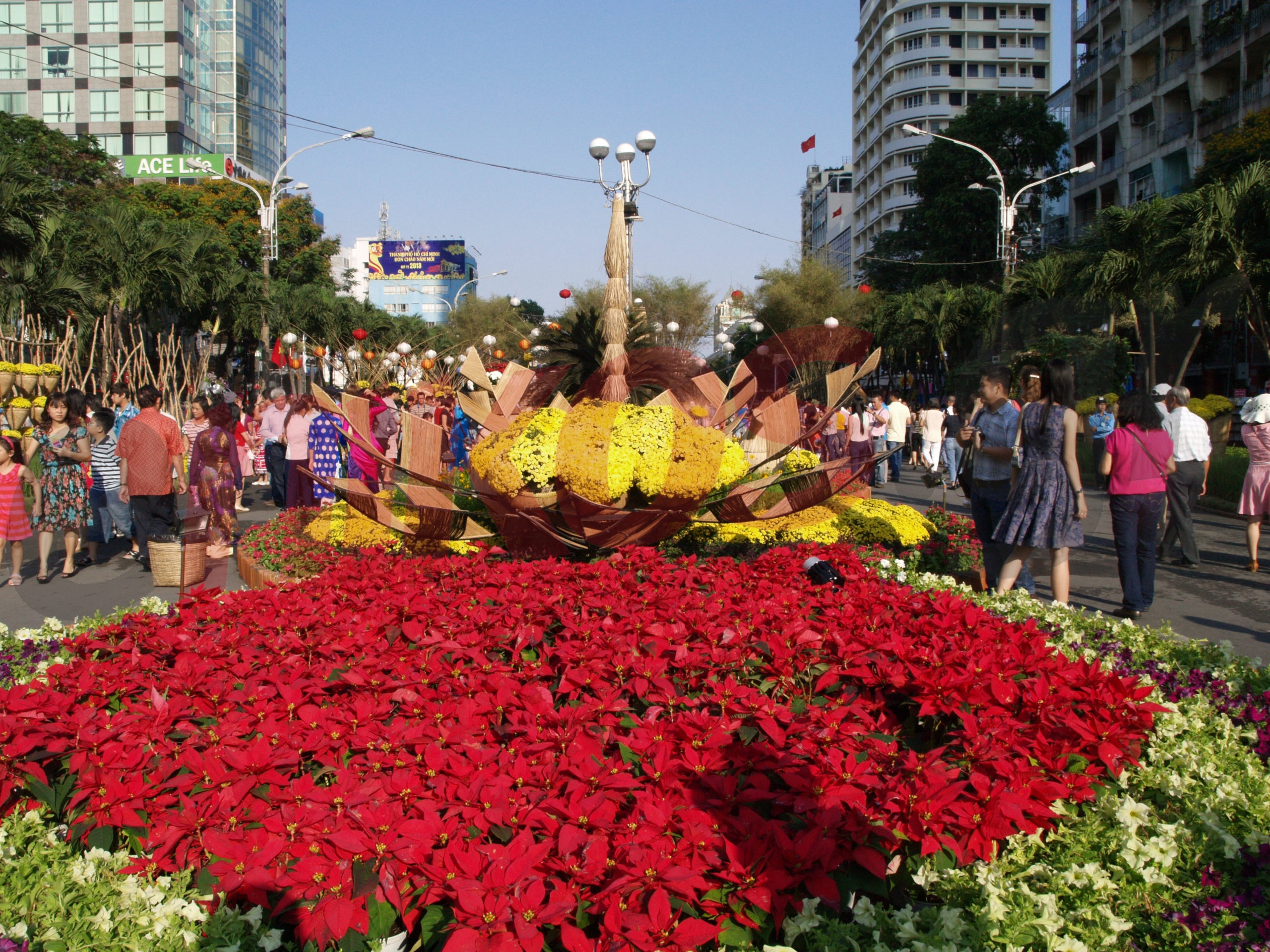 “Εδω ετομάζονται για την αλλαγή της χρονιάς. Το κέντρο της πόλης έχει μεταμορφωθεί για την σημαντικότερη εορτή του Βιετνάμ. Οι φωτογραφίες είναι από την έκθεση λουλουδιών που κάθε χρόνο λειτουργεί στο κεντρο της πόλης. Παράλληλα γίνονται και άλλες εκδηλώσεις όπως έκθεση βιβλίου και θεατρικές παραστάσεις”.