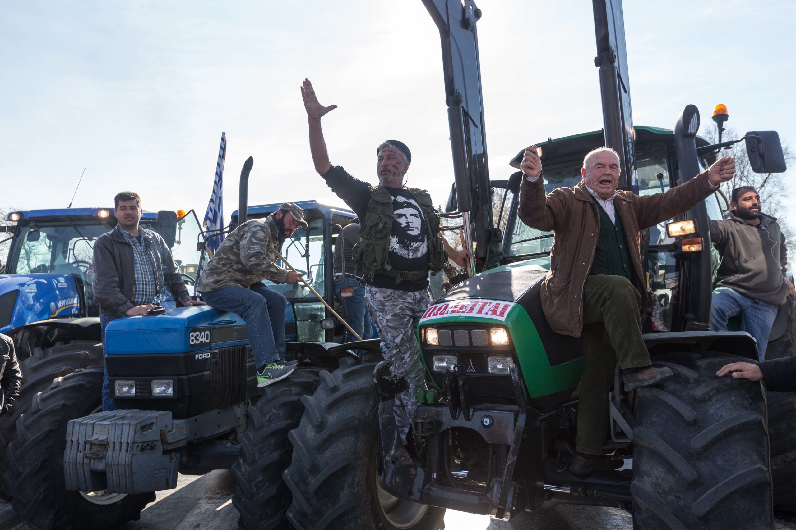 Αγρότες με τα τρακτέρ τους συμμετείχαν στο συλλαλητήριο ενάντια στις αλλαγές στο ασφαλιστικό και στη φορολογία που πραγματοποιήθηκε από διάφορα μπλόκα της χώρας, με αφορμή τα εγκαίνια της έκθεσης Agrotica, στην πλατεία της ΧΑΝΘ στη Θεσσαλονίκη. Τα βλέμματα όλων όμως τράβηξε ένας αγρότης ο οποίος φορούσε μπλούζα με τον Τσε Γκεβάρα και παντελόνι παραλλαγής.