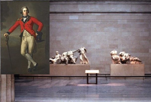 Από το 1801 έως το 1804 τα συνεργεία του Έλγιν έγδυναν την Ακρόπολη, προκαλώντας σημαντικές ζημίες στα γλυπτά και στον Παρθενώνα. Οι άνθρωποί του απέσπασαν, διαμελίζοντας ένα σημαντικό μέρος (περίπου το ήμισυ) από το σωζόμενο γλυπτό διάκοσμο του Παρθενώνα, μαζί με ορισμένα αρχιτεκτονικά μέλη, όπως ένα κιονόκρανο κι ένα σπόνδυλο από κίονα.