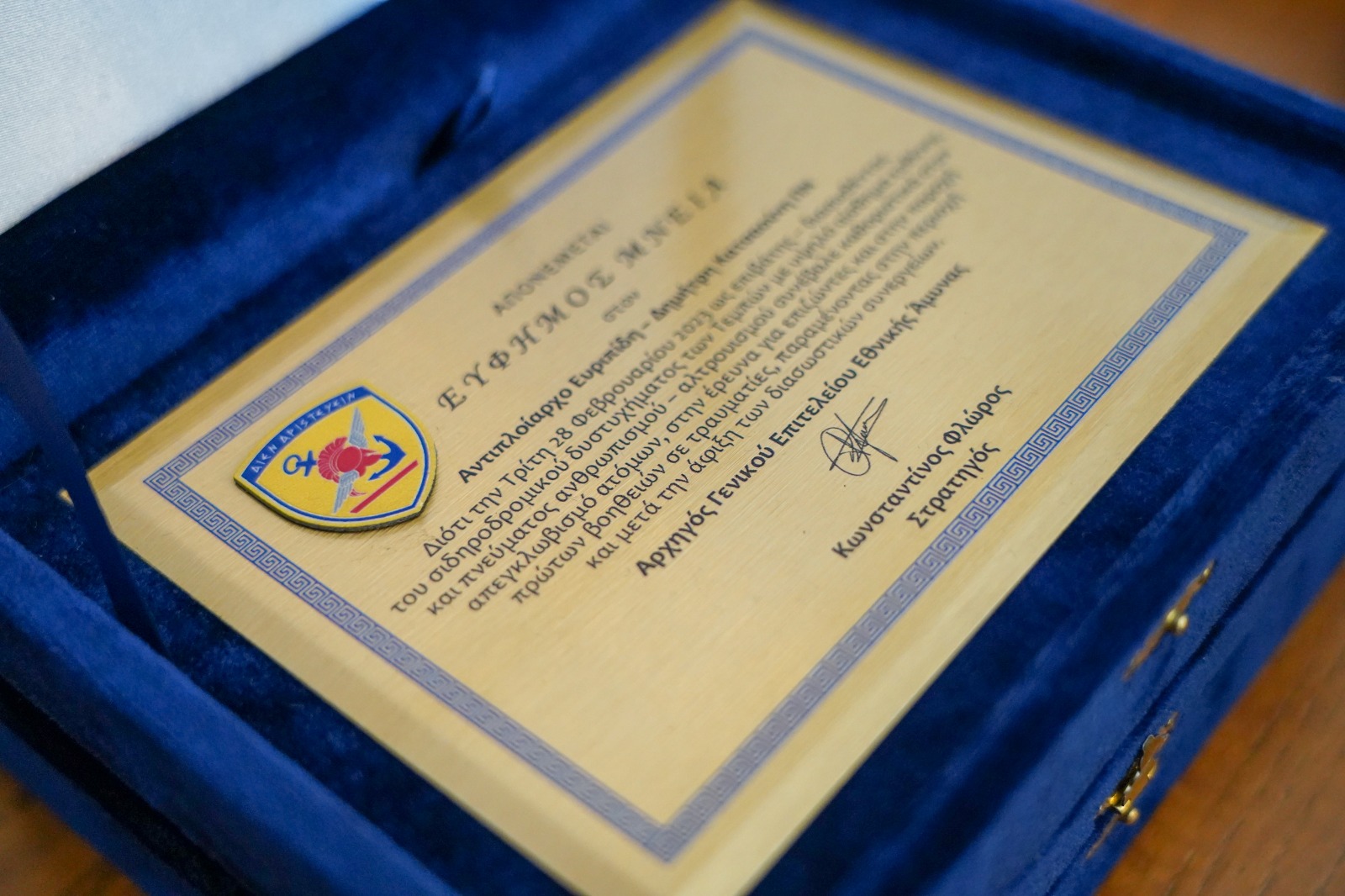 Όπως επισημαίνεται στην σχετική ανακοίνωση του ΓΕΕΘΑ, οι δυο Αξιωματικοί όντες επιβάτες του μοιραίου τραίνου που συνεκρούσθη στα Τέμπη την Τρίτη 28 Φεβρουαρίου 2023 με εμπορική αμαξοστοιχία, επέδειξαν υψηλότατο αίσθημα ευθύνης, αλτρουισμού και αυταπάρνησης, προβαίνοντας από τα πρώτα λεπτά της σύγκρουσης σε έρευνα των βαγονιών του τραίνου και στον καθοριστικό απεγκλωβισμό συνεπιβατών τους, ερευνώντας για επιζώντες, σώζοντας ανθρώπινες ζωές, και παρέχοντας πρώτες βοήθειες. Παρέμειναν στην περιοχή του δυστυχήματος συνεχίζοντας το πολύτιμο έργο τους, ακόμα και μετά την άφιξη των διασωστικών συνεργείων, δηλωτικό των υψηλών αξιών που τους διέπουν.
