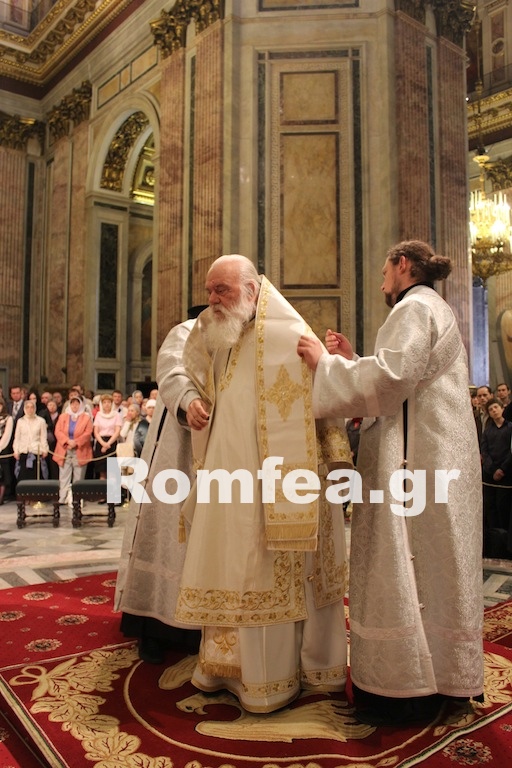 “Είναι γνωστό σε όλους σας, ότι στην Ελλάδα τα τελευταία χρόνια οι αδελφοί σας Ὀρθόδοξοι Χριστιανοί ἀντιμετωπίζουν σοβαρά πρόβλήματα, τα ὁποία δημιούργησε η οικονομική κρίση. Παρόμοια προβλήματα καί ανάλογες δυσκολίες αντιμετωπίσατε καί εσείς κατά το παρελθόν”, είπε ο Αρχιεπίσκοπος Αθηνών και πάσης Ελλάδος κ. Ιερώνυμος, στο πλαίσιο της Θείας Λειτουργίας που τελέστηκε στον Καθεδρικό Ναό του Αγίου Ισαακίου στην Αγία Πετρούπολη, όπου βρίσκεται.