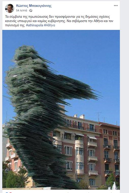 “Τα σύμβολα της πρωτεύουσας δεν προσφέρονται για τις δημόσιες σχέσεις κανενός υπουργού και καμίας κυβέρνησης. Να σεβόμαστε την Αθήνα και τον πολιτισμό της”.