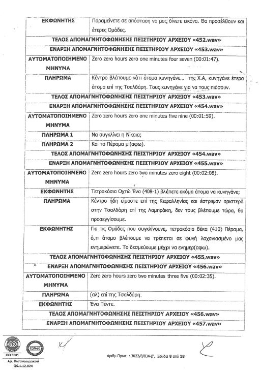 Ωστόσο το κέντρο της ΕΛ.ΑΣ ακούγεται να τους δίνει εντολή «να μείνουν σε απόσταση προκειμένου να δίνουν εικόνα στο κέντρο της ΕΛ.ΑΣ».