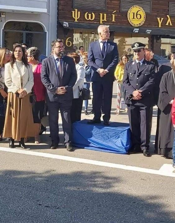 Δίπλα από τον κ. Μάδη, και εκτός βάθρου, βρίσκονταν μεταξύ άλλων ο βουλευτής της ΝΔ Βασίλης Οικονόμου και ο διοικητής της Αστυνομίας της περιοχής.