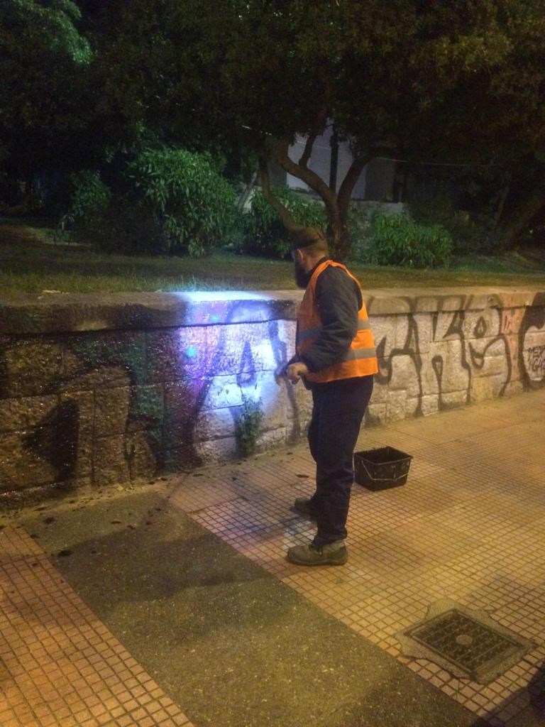 Σε ένα από τα πλέον κεντρικά και πολυσύχναστα σημεία της πόλης συνέχισε ο Δήμος Αθηναίων τις αντιγκράφιτι παρεμβάσεις που εξελίσσονται με εντατικούς ρυθμούς από τους ανθρώπους της Διεύθυνσης Καθαριότητας και τα ειδικά συνεργεία που χρησιμοποιούνται γι’ αυτό τον σκοπό. Πρόκειται για το Πάρκο Ευαγγελισμού στην Βασ. Σοφίας, μπροστά από το μεγαλύτερο νοσοκομείο της χώρας που αυτό τον καιρό αποτελεί σημείο αναφοράς της μάχης ενάντια στην πανδημία του κορονοϊού.