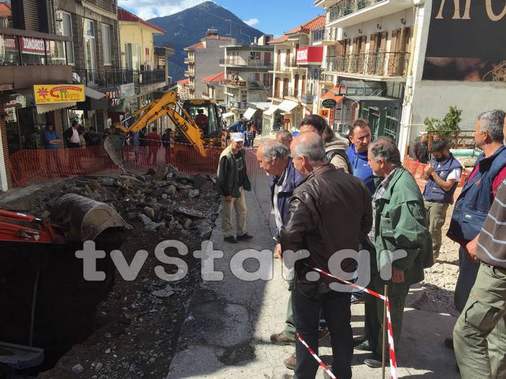 Σοκαρισμένοι οι επιχειρηματίες αλλά και οι περίοικοι του Καρπενησίου αντίκρισαν ένα σκαπτικό μηχάνημα, που εκτελούσε εργασίες, να βυθίζεται και να εξαφανίζεται μπροστά στα μάτια τους.