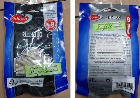 Πρόκειται για το προϊόν με την εμπορική ονομασία «OCTOPUS-Snack aus getrockneten Pazifik-Sardellen», προέλευσης Βιετνάμ, σε συσκευασία των 40 γρ., με ανάλωση κατά προτίμηση πριν από 18-7-2019.