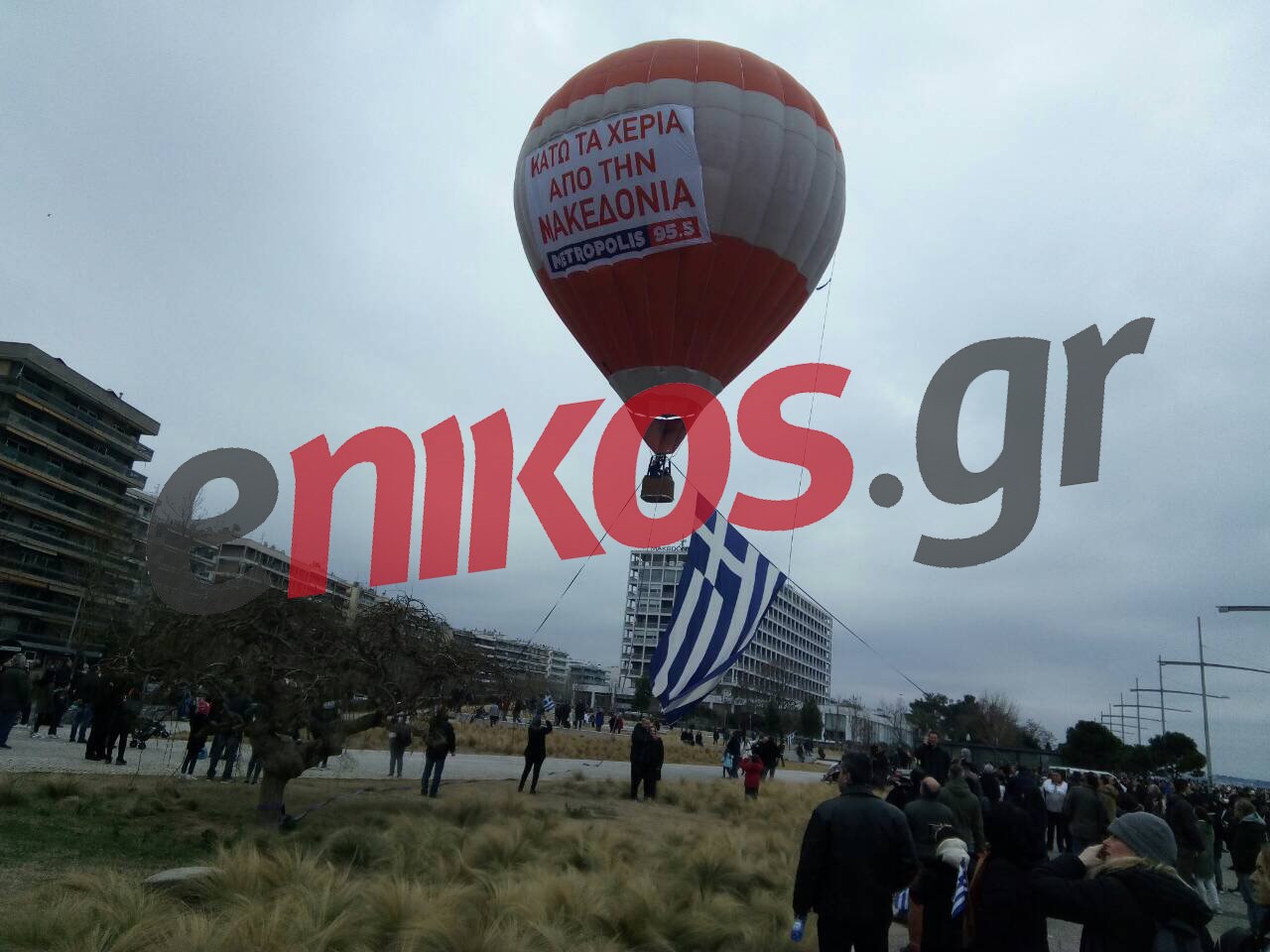 Οι συμμετέχοντες στο συλλαλητήριο έστειλαν το δικό τους μήνυμα και μέσω ενός αερόστατου.