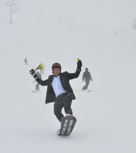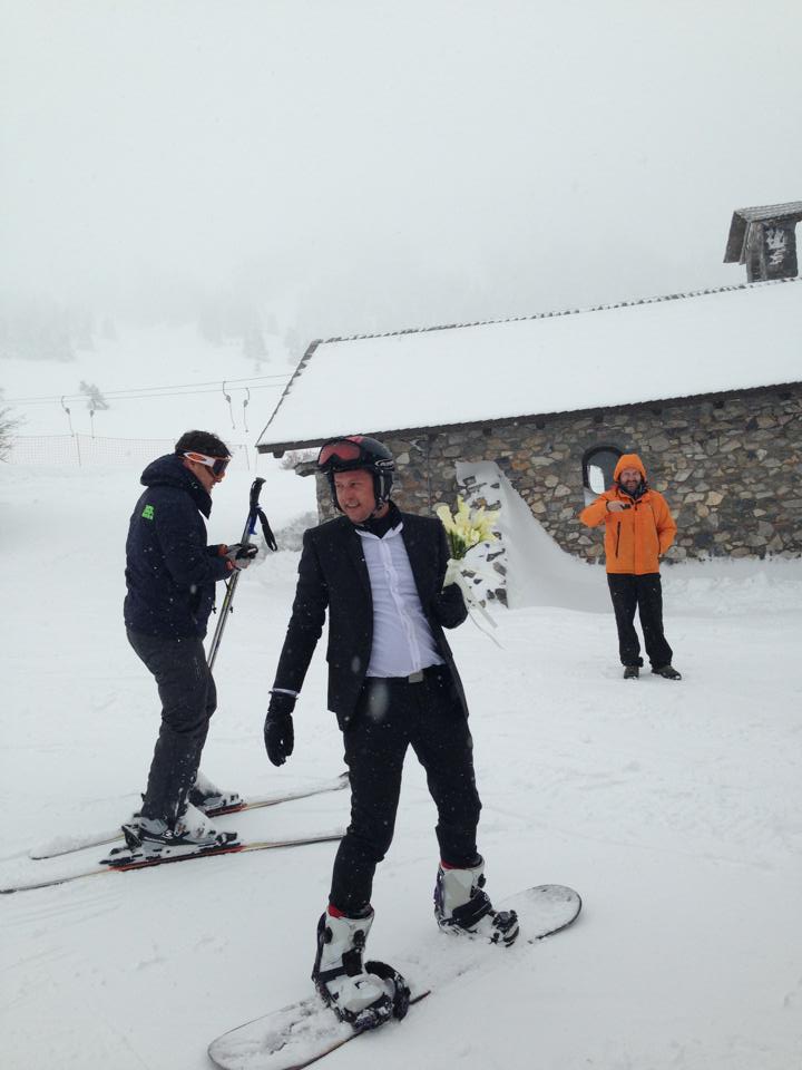 Ο Κωνσταντίνος και η Δέσποινα, λάτρεις του snowboard και φανατικοί του Χελμου αποφάσισαν να ενωθούν με τα δεσμά του γάμου στο εκκλησάκι του Άγιου Υάκινθου που βρίσκεται στο χιονοδρομικό κέντρο.