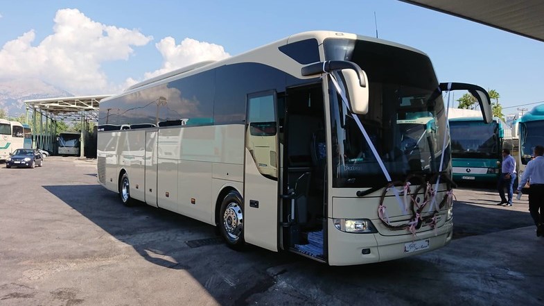 Οι συνάδελφοί του, οδηγοί στο Υπεραστικό ΚΤΕΛ Αχαΐας τον πήγαν γαμπρό, όπως του έπρεπε… συνοδεία δηλαδή 20 υπεραστικών λεωφορείων. Με κόρνες και τα λεωφορεία κατάλληλα στολισμένα, τον συνόδευσαν μέχρι την εκκλησία.