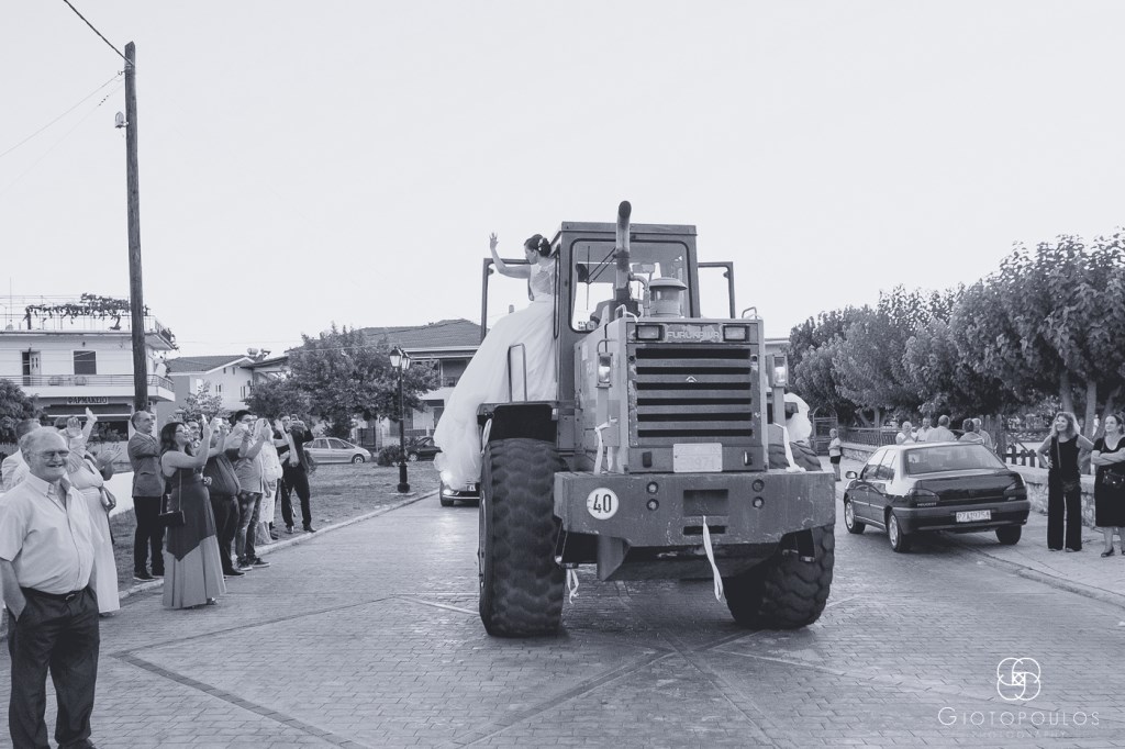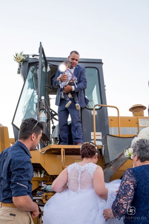 Μέχρι σήμερα είχαμε δει διάφορους τρόπους με τους οποίους κάποιοι γαμπροί επέλεξαν να πάνε στον γάμο τους.Ανάλογα με το επάγγελμα, μερικοί έχουν πάει με νταλίκα, άλλοι με καράβι, άλλοι με μηχανή και κάποιοι άλλοι με λεωφορείο ή ακόμα και… τρακτέρ.Το Σάββατο το απόγευμα, ένας γαμπρός στην Πρέβεζα, αποφάσισε να πάει στην εκκλησία με την… μπουλντόζα του, μιας και ασχολείται με χωματουργικές εργασίες. Με την μπουλντόζα μάλιστα έφυγε και μετά το μυστήριο, επιβιβάζοντας σε αυτή και τη νύφη!Δείτε τις φωτογραφίες:
