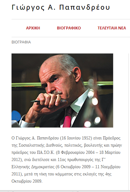 Κι όπως βλέπετε και στην επίσημη ιστοσελίδα του Γιώργου Παπανδρέου σαν σήμερα έχει γενέθλια ο πρώην Πρωθυπουργός που η θητεία του στον πρωθυπουργικό θώκο συνδέθηκε με την υπογραφή του Μνημονίου.