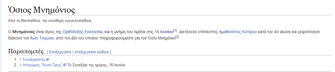 Όπως βλέπετε και στο ημερολόγιο της ελεύθερης εγκυκλοπαίδειας ΒΙΚΙΠΑΙΔΕΙΑ σαν σήμερα γιορτάζουμε τον Άγιο Μνημόνιο.