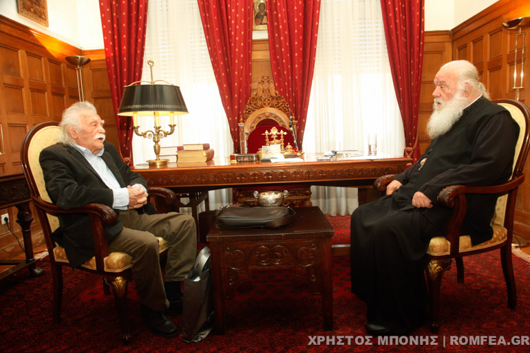 Με τον Αρχιεπίσκοπο Ιερώνυμο συναντήθηκε ο Μανώλης Γλέζος στο Μέγαρο της Ιεράς Αρχιεπισκοπής Αθηνών.