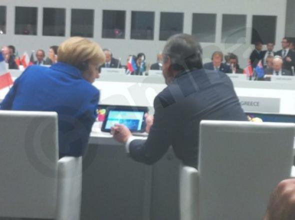 Ο Πρωθυπουργός άνοιξε το tablet του και εξηγούσε στη Γερμανίδα καγκελάριο τις λεπτομέρειες από τα εντυπωσιακά ευρήματα.