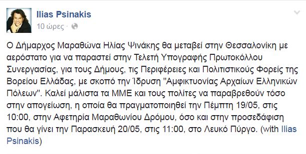 Ο δήμαρχος Μαραθώνα θα μεταβεί με αυτό τον πρωτότυπο τρόπο στην πόλη, για να παραστεί στην Τελετή Υπογραφής Πρωτοκόλλου Συνεργασίας, για τους Δήμους, τις Περιφέρειες και Πολιτιστικούς Φορείς της Βορείου Ελλάδας, με σκοπό την Ίδρυση «Αμφικτυονίας Αρχαίων Ελληνικών Πόλεων».