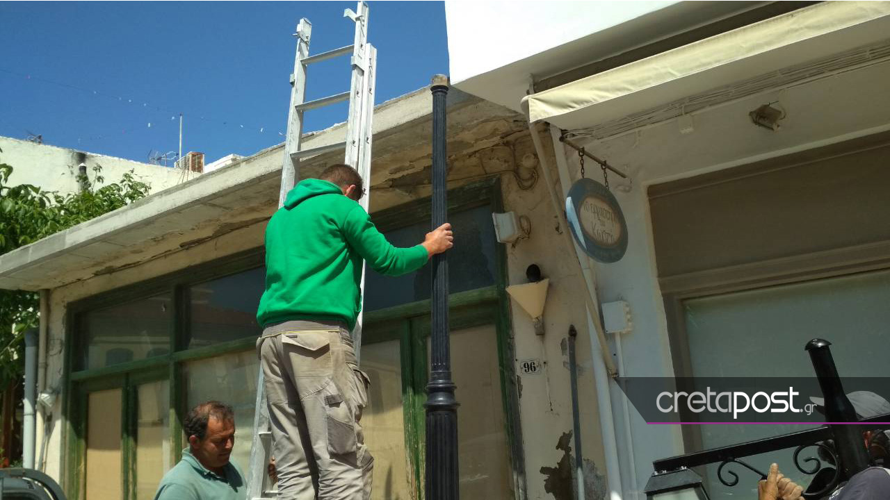 Οι προετοιμασίες είναι πυρετώδεις με τους εργαζόμενους να αλλάζουν λάμπες στους στύλους φωτισμού της περιοχής – που, σημειωτέον, τόσο καιρό δεν άναβαν – ενώ παράλληλα άλλαξε και η πινακίδα που βρίσκεται στην είσοδο των Επάνω Αρχανών.