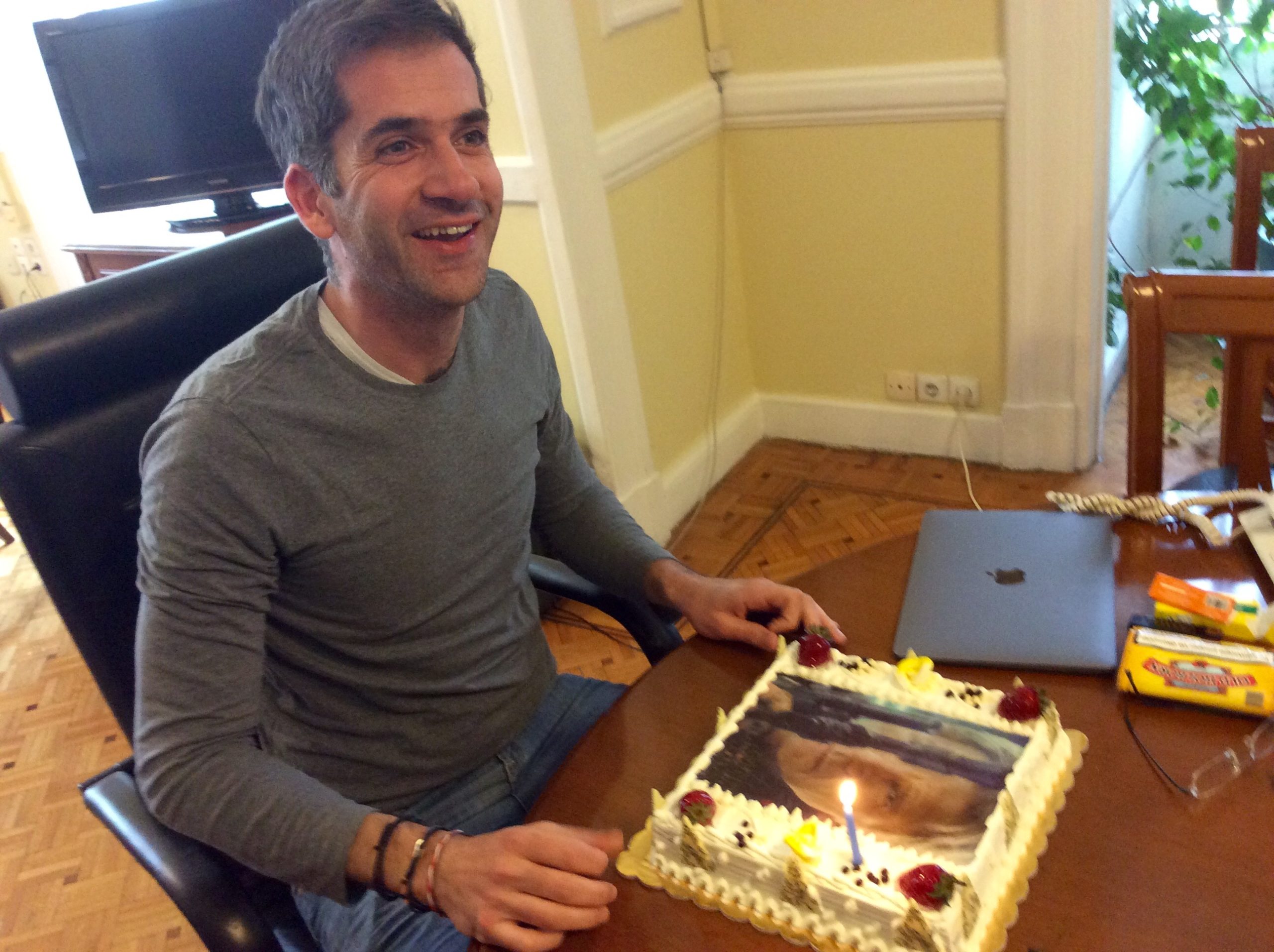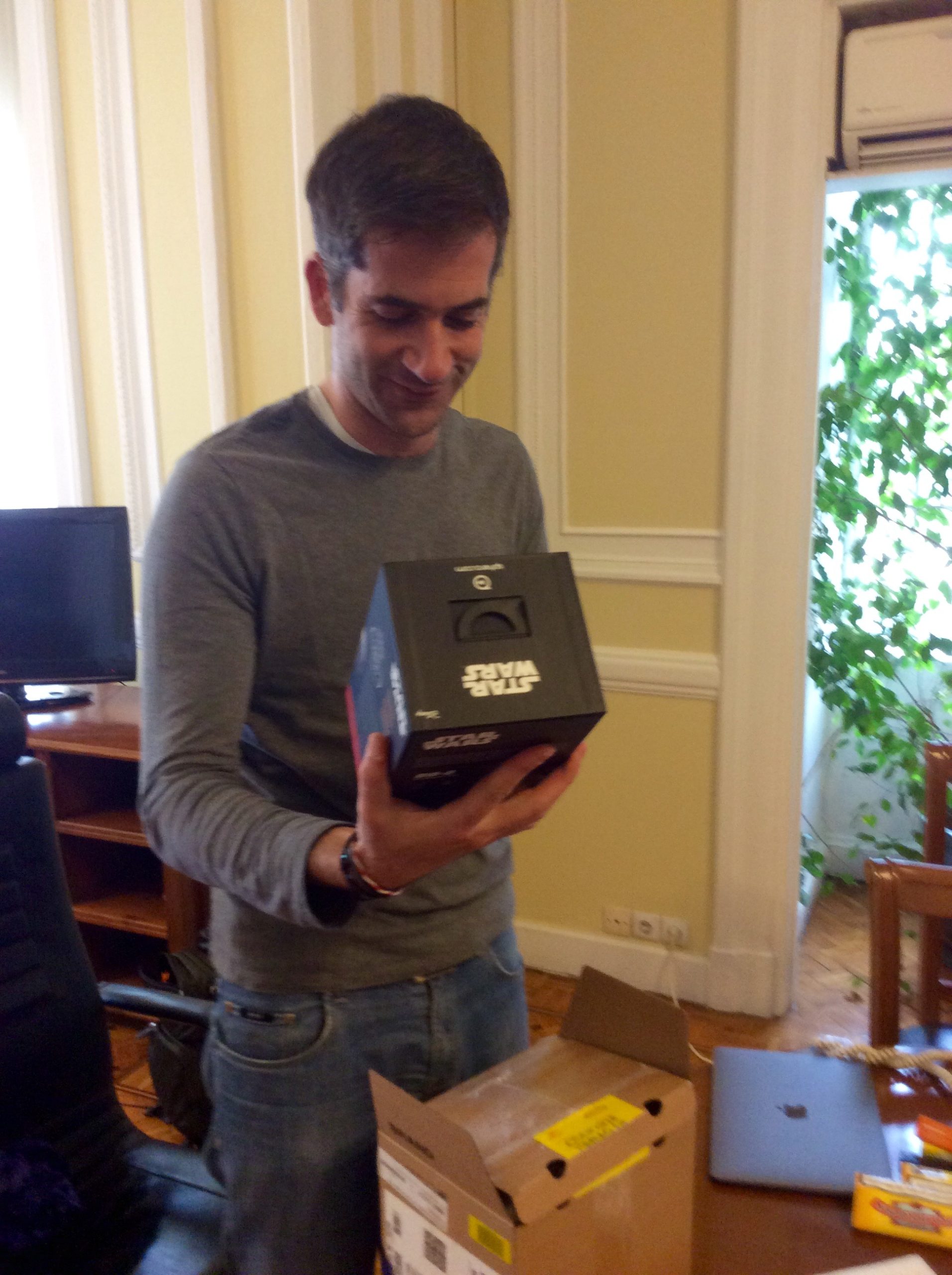 Μπαίνοντας το πρωί στο γραφείο του, βρήκε την τούρτα που είχαν ετοιμάσει οι συνεργάτες του με θέμα την ταινία “Star wars“.