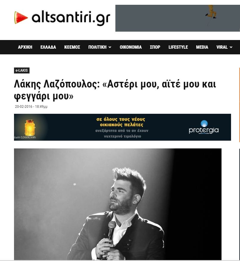 Ένα άρθρο υπό τον τίτλο «Αστέρι μου, αϊτέ μου και φεγγάρι μου» έγραψε ο Λάκης Λαζόπουλος στο site του για τον χαμό του Παντελή Παντελίδη.