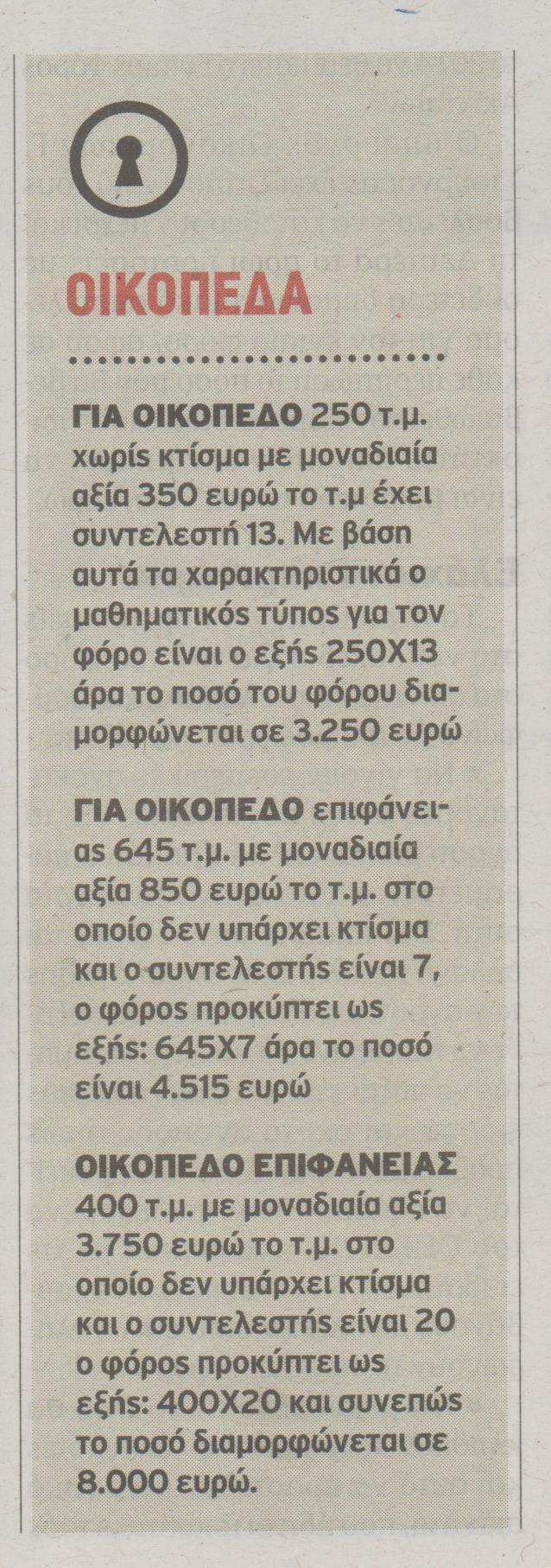 Ο φόρος θα είναι μικρότερος εάν εντός του οικοπέδου υπάρχει κατοικία και μεγαλύτερος αν στην έκταση δεν υπάρχει κτίσμα.