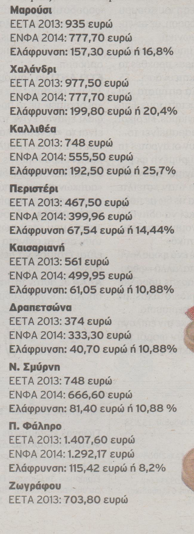 Εκπτώσεις συγκριτικά με το ειδικό τέλος ακινήτων μέχρι και 26% προκύπτουν για όσους έχουν στην κατοχή τους μόνο ηλεκτροδοτούμενες κατοικίες που βρίσκονται σε χαμηλές και μεσαίες περιοχές της Αττικής με αντικειμενική αξία μέχρι 2.750 ευρώ και αύξηση του φόρου μέχρι και 31% για πλούσιες ζώνες.