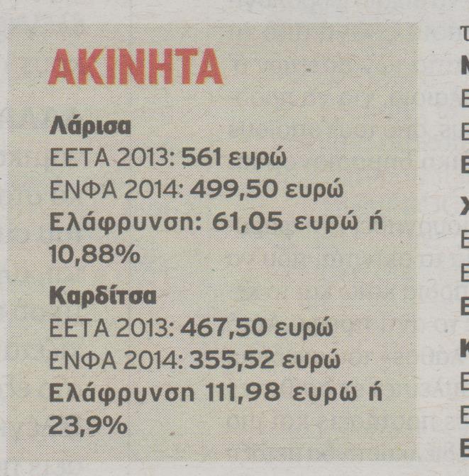 Φορο-λογαριασμό με ελαφρύνσεις και επιβαρύνσεις για τους ιδιοκτήτες ακινήτων σε σχέση με το χαράτσι της ΔΕΗ αλλά και καταβολή φόρου για πρώτη φορά για μη ηλεκτροδοτούμενα ακίνητα και αγροτεμάχια εκτός σχεδίου πόλης, βγάζει ο ενιαίος φόρος ακινήτων που θα εφαρμοσθεί από το 2014.