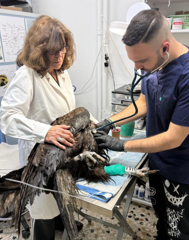 Σε μια μάχη με τον χρόνο και τις αποστάσεις, το πουλί, σε κρίσιμη κατάσταση, μεταφέρθηκε αεροπορικώς στην Αθήνα και κατόπιν στον Σταθμό Α’ Βοηθειών της ΑΝΙΜΑ, που διαθέτει μέσα, προσωπικό και μεγαλύτερη εμπειρία για τέτοιες περιπτώσεις. Εκεί, ο μαυρόγυπας υποβλήθηκε σε οροθεραπεία, προκειμένου να αποβάλει τις τοξίνες και ανταποκρίθηκε εντυπωσιακά γρήγορα στη θεραπεία.