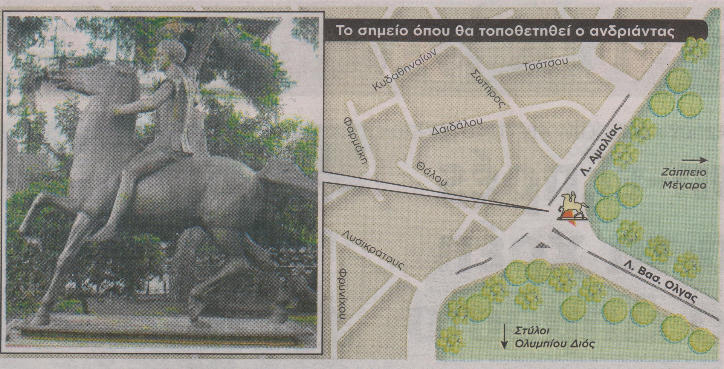 Σαράντα δύο χρόνια μετά τη φιλοτέχνησή του και δεκατρία μετά τη δωρεά του στον Δήμο Αθηναίων, ο έφιππος ανδριάντας του Μεγάλου Αλεξάνδρου, φαίνεται πως θα βρει μια επίσημη θέση στον αθηναϊκό ήλιο, στη συμβολή των λεωφόρων Αμαλίας και Β. Όλγας.