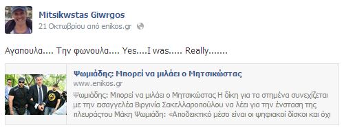 Ο Γιώργος Μητσικώστας διάβασε την είδηση στο enikos.gr και απάντησε μέσω της προσωπικής του σελίδας στο facebook.