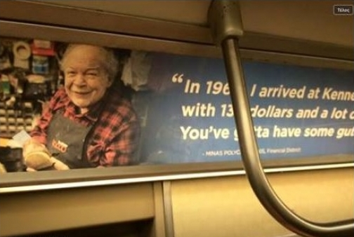 Αυτές τις ημέρες η φωτογραφία του βρίσκεται στους συρμούς του μετρό της Νέας Υόρκης, ενώ αναγράφεται και η φράση του «Πρέπει να έχετε “κότσια”»!