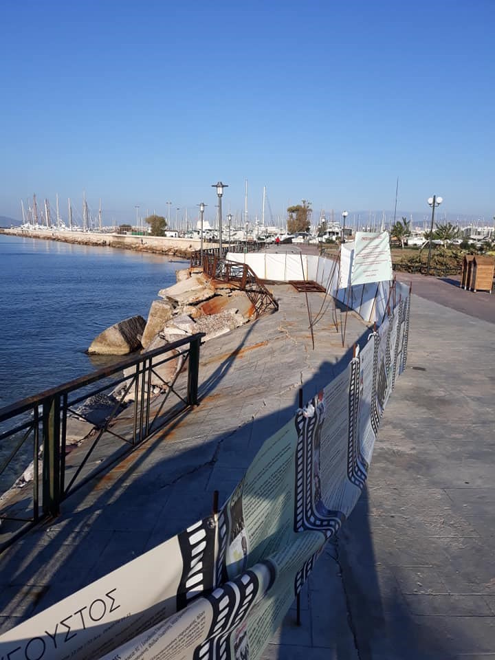 Το παραλιακό κρηπίδωμα που έχει καταρρεύσει είναι η εικόνα που αντικρίζει ο επισκέπτης του παραλιακού πεζόδρομου στον Άλιμο, τον οποίο επισκέπτονται εκατοντάδες πολίτες για τη βόλτα τους κάθε ημέρα.