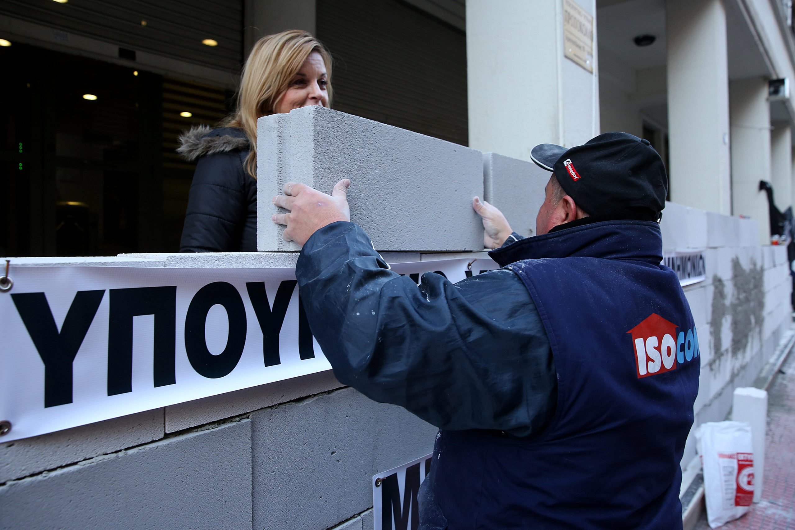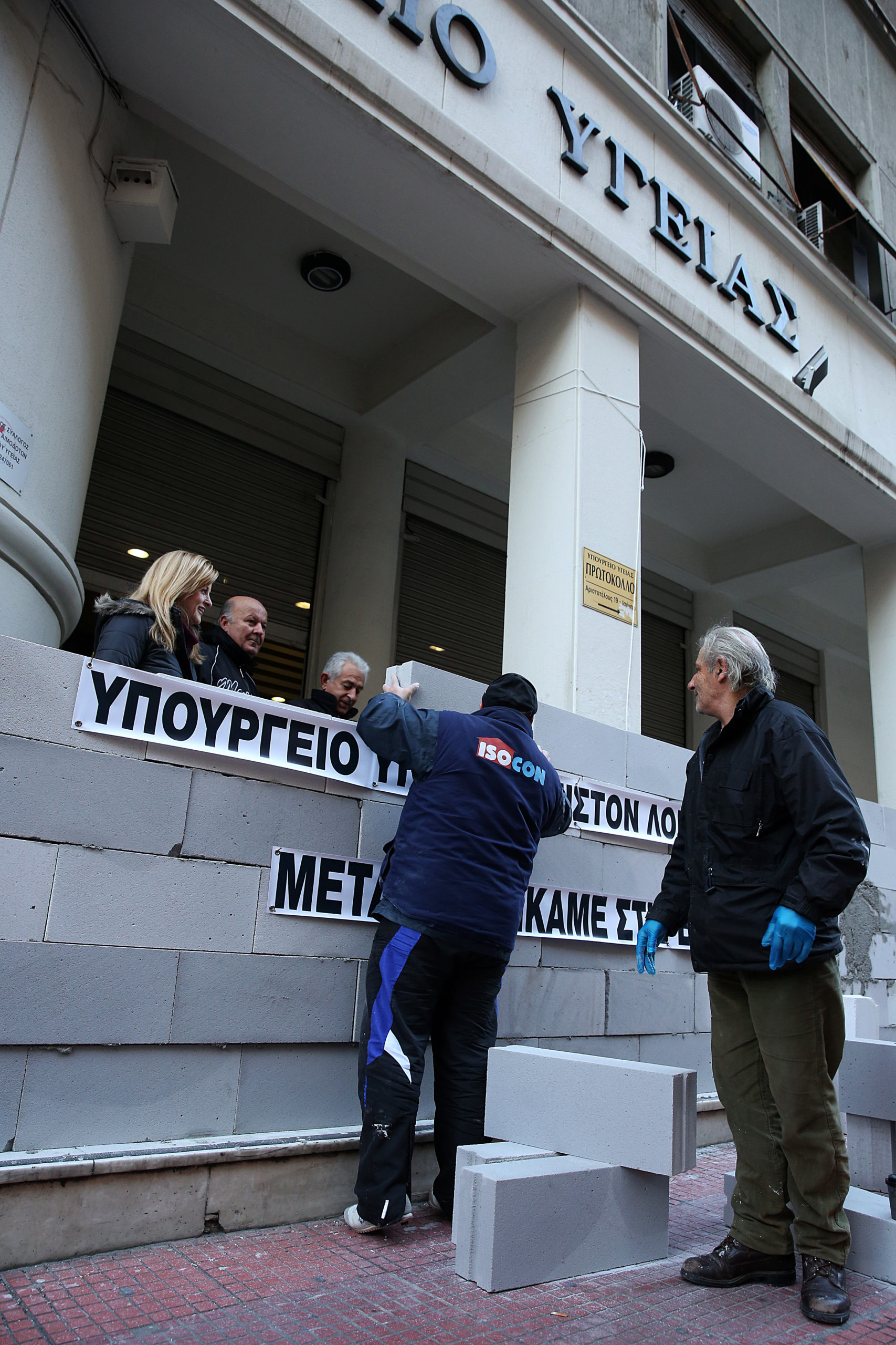 Εργαζόμενοι στα δημόσια νοσοκομεία χτίζουν την είσοδο του υπουργείου Υγείας – ΒΙΝΤΕΟ