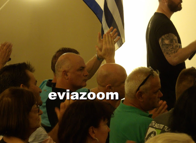 Το παρών στην εκδήλωση της Χρυσής Αυγής στη Χαλκίδα έδωσε ο πρώην αστυνομικός διευθυντής Εύβοιας Λάμπρος Χουλιάρας, φωνάζοντας μάλιστα συνθήματα και τραγουδώντας τον ύμνο της οργάνωσης.