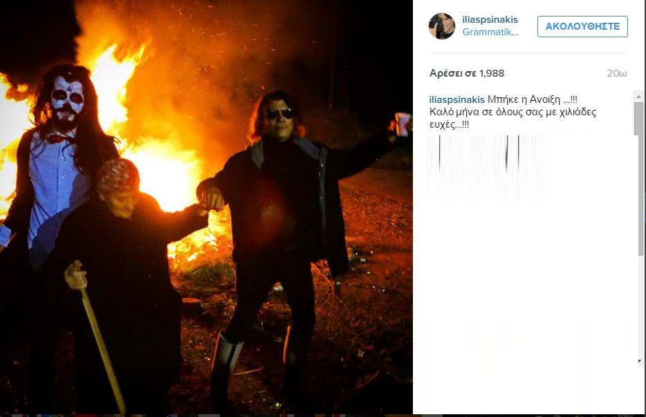 Ο Ηλίας Ψινάκης γιορτάζει τις Απόκριες και την άνοιξη στον Μαραθώνα και το γνωστοποίησε στους χιλιάδες ακολούθους του στο Instagram με μια φωτογραφία από τις εκδηλώσεις.