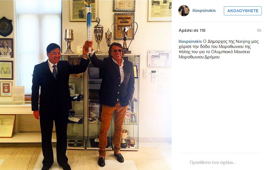 Το στυλ είναι κάτι που δεν αποχωρίζεται ποτέ ο δήμαρχος Μαραθώνα, Ηλίας Ψινάκης. Αυτό φαίνεται ξεκάθαρα από την φωτογραφία του με τον δήμαρχο της Nanjing ο οποίος χάρησε τη δάδα του Μαραθωνίου της πόλης του για το Ολυμπιακό Μουσείο Μαραθωνίου Δρόμου.